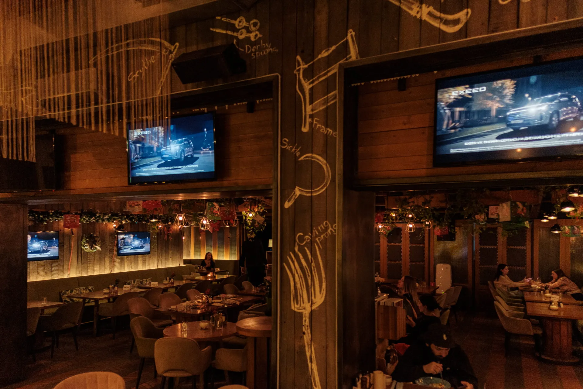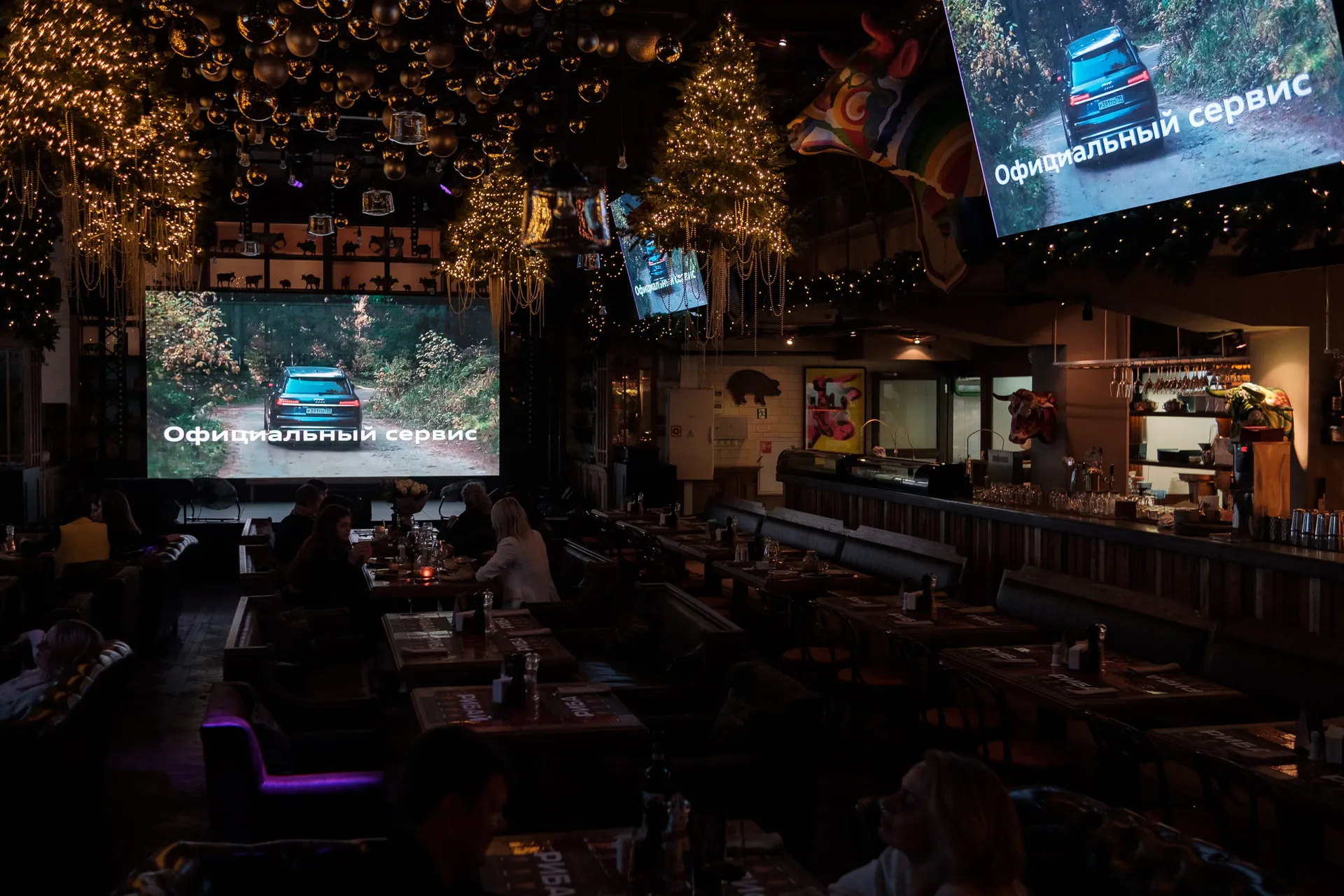 Представьте: ваш ролик каждые 15 минут в эфире на 00 экранах. Это 190 000 показов в месяц в лучших ресторанах: Ginza, Terrassa, «НАША dacha», «Москва» и других, где постоянные гости видят вашу рекламу снова и снова.
